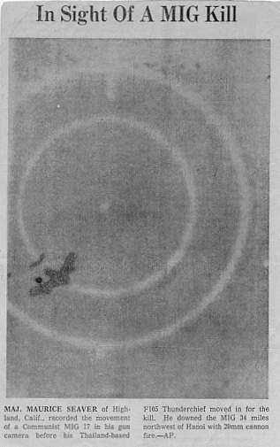 Newspaper account of Seaver's MIG Kill over North Vietnam
