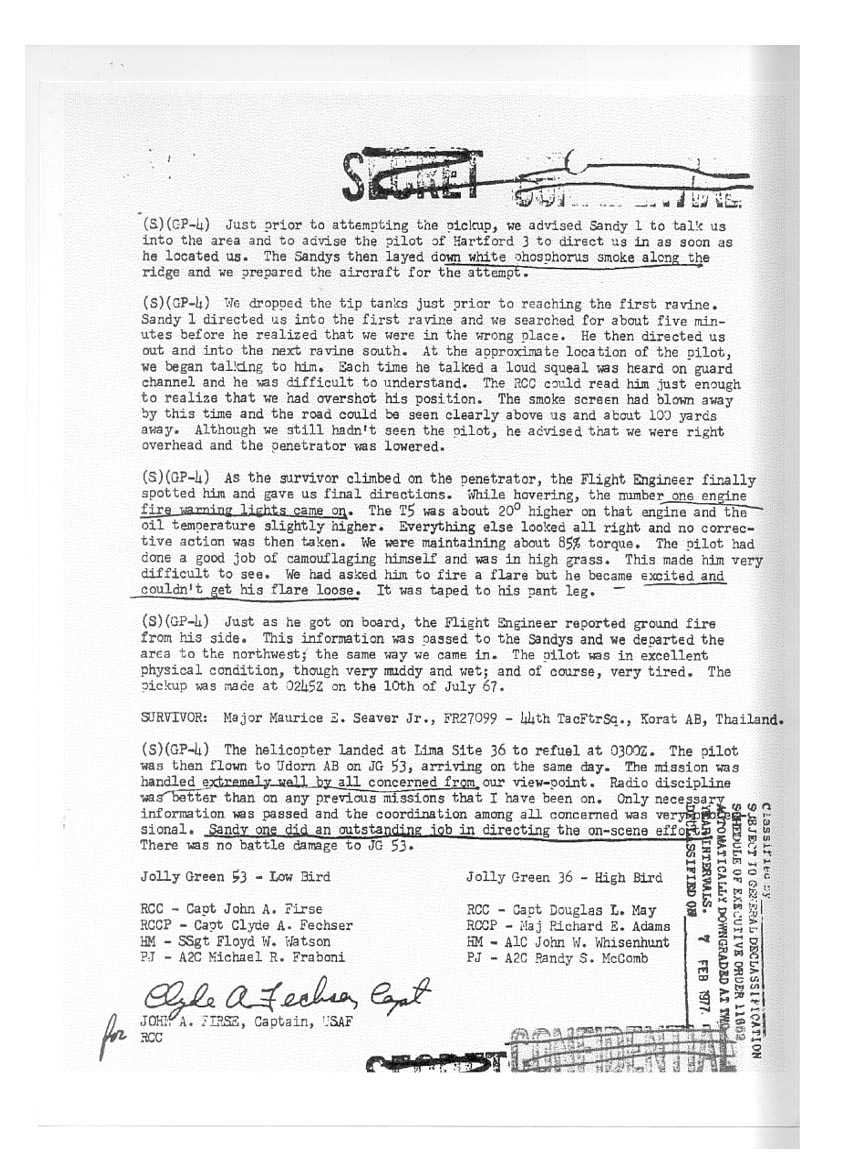Click here to read Maj. Seaver's Report on his Ejection from his damaged A/C.