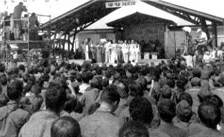 Bob Hope 69 - The show was at the "Yim Yam Theater" on the Army base that bordered the Air Base at Korat. Featured were Bob Hope (of course), Penelope Plumber (Miss World), Ann Margaret, the Gold Diggers, Honey Ltd., Les Brown and His Band of Reknown, with a backdrop of a whole lot of horney GI's.