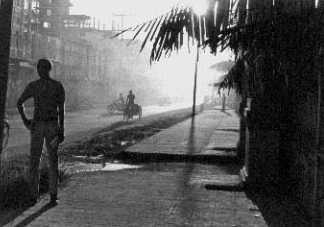Lonely GI - If I recall, this street is on the west side of Korat. The "Lonely GI" is my roomie from ShawAFB,SC, Ken Kooser. Although I had a wonderful year, there was something about being far from home.