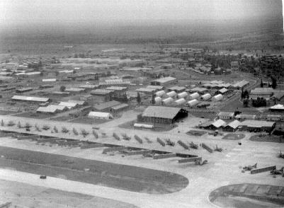 A shot taken from the copilot's window of a 7 ACCS EC-130 on a training flight. You can make out the F-4 revetment area.