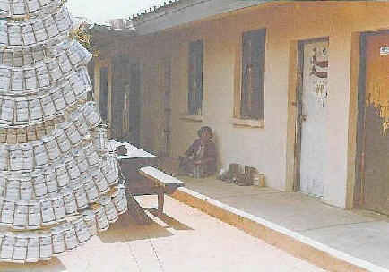 We made a Christmas tree out of well over 1,000 Bud cans, which we faithfully emptied. The Bud folks sent us all kinds of stuff when we sent them a pic of the tree.
