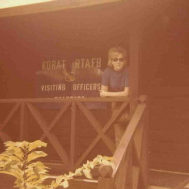 This is a 1972 picture of my wife standing in front of the Korat AB VOQ. She was lucky enough to be allowed to stay in the VOQ on this visit to Korat. I was TDY to Korat with College Eye and the EC-121s.
