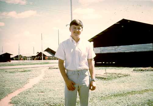 Dennis Martin: taken in the hootch area. MARS shack in left background. We arrived at Korat together and were hootch-mates.