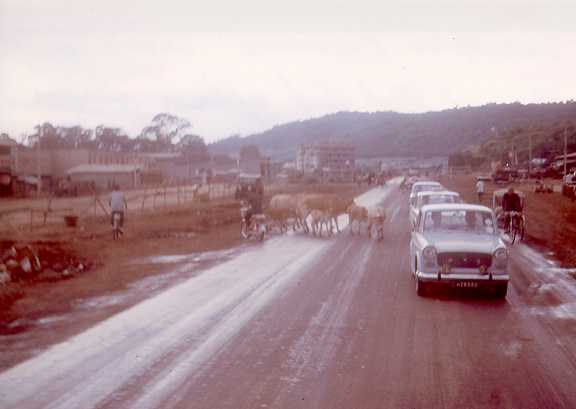 Cattle in town of Mok Lek after monsoon storm.