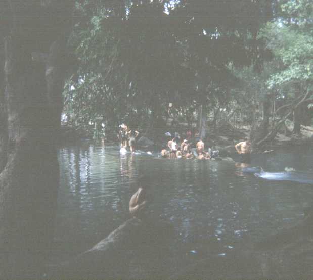 Swimmers / bathers gather in the river Muog Lek Provincial Park near Korat.