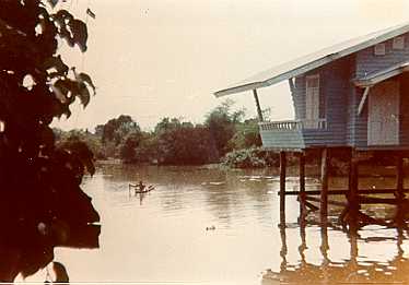 The caretaker allowed us to drink Singha on his deck overlooking the irragation diversion of the Mun River (Menam Mun). 1969