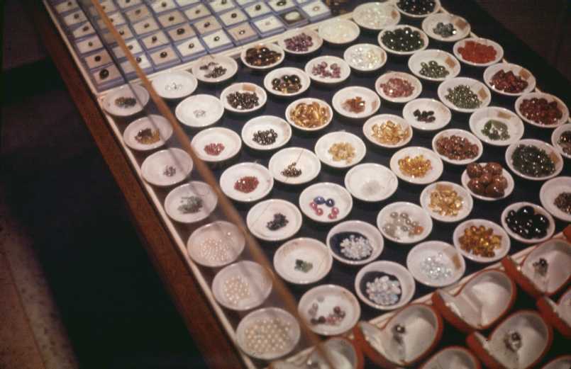 A sampling of gemstones for sale in a Korat jewelry shop.
