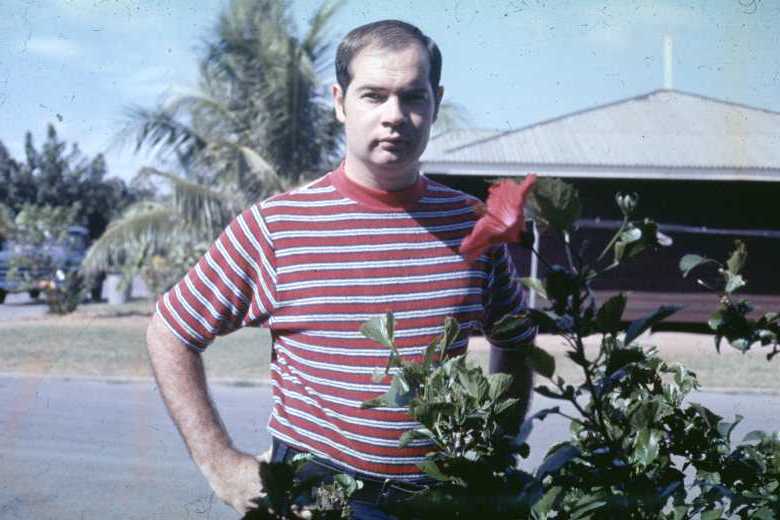 Chan Worley near the first hootch he lived in at Korat (near the tennis courts).